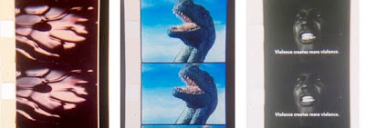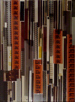 Materiales: Fragmentos de películas de 8mm, 16mm, super 8, 35mm y 70mm, sobre papel.
