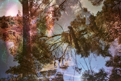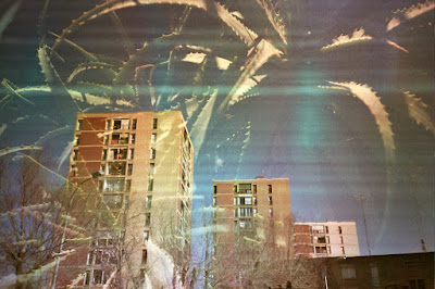 Sometimes, I make projects in which an idea is crucial not just the sum of pictures and I want that idea to reach audiences (this is not always the case for me) . To do this, sound/words to provide a context to or juxtapose with the image. The best example of this is how Geographie (2000) came about. After listening to Americans express their distaste for the German language, I decided to make a sound collage of three voices dealing with notions of Jewish identity: in German (me) Turkish and Russian (spoken by two friends), three languages with long and complicated histories. I then thought about different sorts of maps as a suitable kind of images for the sound. After speaking with a colleague about how he attained interesting textures through the use of mouldy quark (a soft German cheese, like fromage blanc) I put strips of leader in and let it eat away at the emulsion for just over a month (until it really really stunk) and then, multiple exposed maps copied on to transparencies together with these textures, creating both acoustical and visual imaginary geographies.